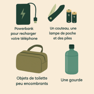 - Un couteau, une lampe de poche et des piles